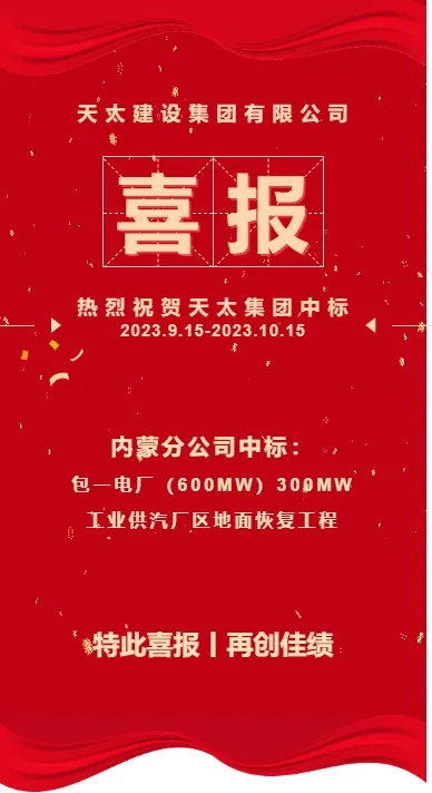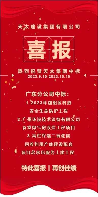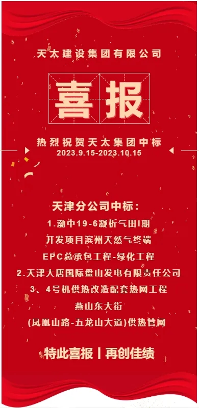 中標喜訊!熱烈祝賀天太集團新項目中標(2023.9.15-2023.10.15)