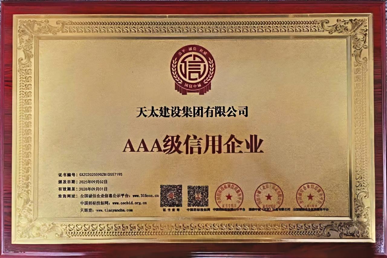 AAA級企業資信等級證書